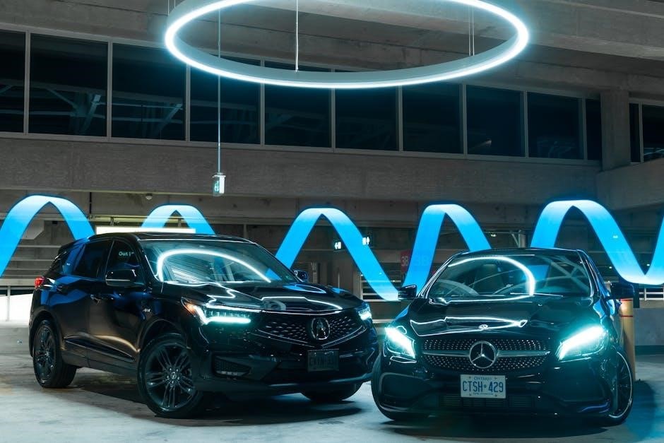 Acura MDX manuals detail both exterior features – controls, and interior components. They cover dashboard indicators, warnings, and provide a complete vehicle layout guide.